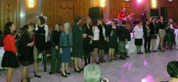 Très élégante et souriante, la pdte de l’Aumonaise souhaita la bienvenue à l’assistance déjà conquise et l’invita à passer « un moment délicieux » en compagnie de « La Bourrée de Paris ». Musiciens et danseurs nombreux et très seyants dans leurs costumes soignés, firent leur entrée sous les applaudissements. Gérard BAYOL, pdt d’honneur de « La Bourrée » précisa que le moment était unique et que c’est grâce au pdt d’honneur de la soirée, Thierry BORREL, pdt de « La Bourrée » depuis 1997 que le groupe folklorique a acquis désormais une renommée internationale. C’est depuis 1925 que « La Bourrée » est le chantre des chants et danses du Massif Central et c’est une très brillante démonstration qu’elle offrit à l’Aumonaise avec la chorale d’abord qui distilla son talent avec excellence dans le plus parfait silence : « d’un paysan s’en va » au « pays natal » puis, avec un premier enchaînement effréné de danses toutes exécutées avec enthousiasme et un second pot-pourri de bourrées de l’Aubrac dont la spectaculaire Volante qui impressionna l’auditoire. Un tonnerre d’applaudissements ponctua ce spectacle magique tandis que l’orchestre de François BOISSONNADE suggérait quelques pas de danse à l’assistance.